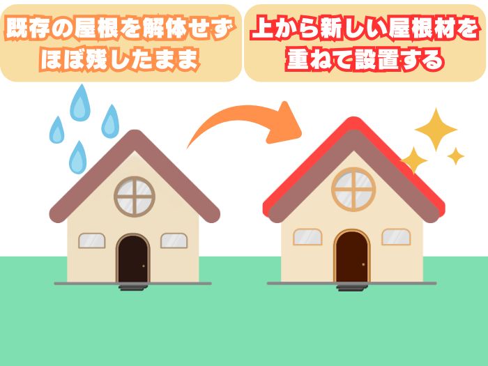 - 費用を抑えられる: 既存屋根の撤去・処分費用がかからないため、葺き替え工事に比べてコストを削減できます。